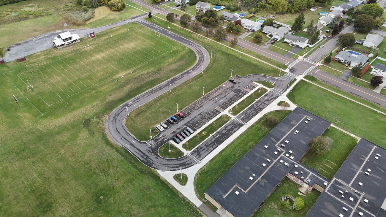 - Scope of services at Owasco Elementary included replacement of concrete walk at front entrance to bus loop and addition of concrete walk from loop to street intersection.